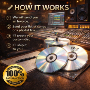 Your custom Mix CD is professionally burned, labeled, and shipped within just a few days via the United States Postal Service. Each order is made exclusively for you, making it perfect for gifts, car listening, home audio systems, or special occasions.